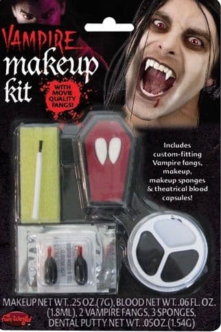 Accessories: Dracula wig, Dracula make up kit with fangs